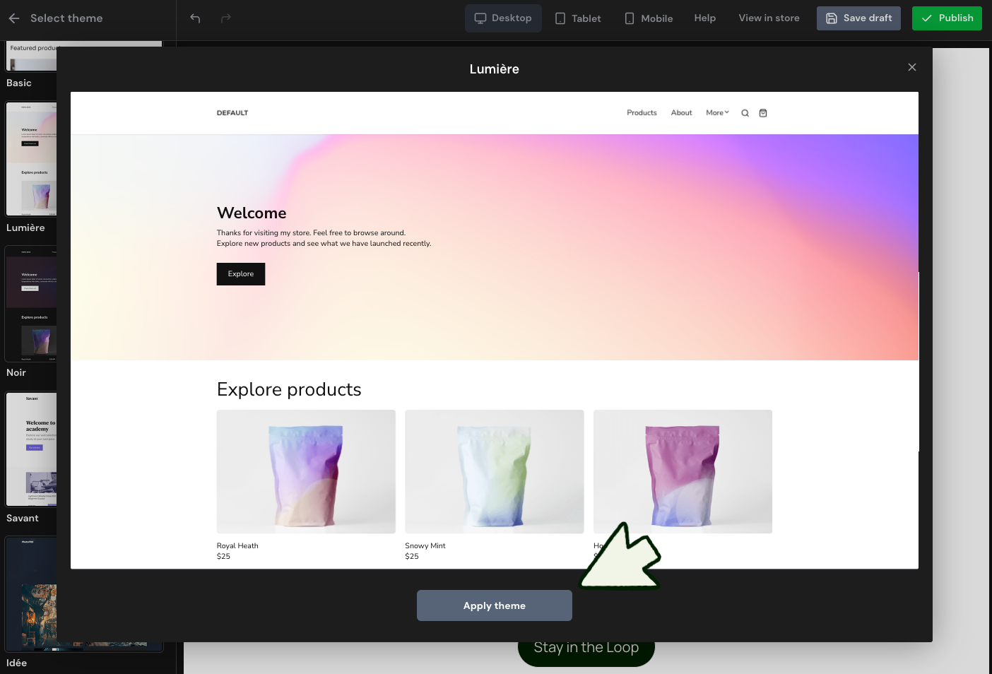 Choose a store theme