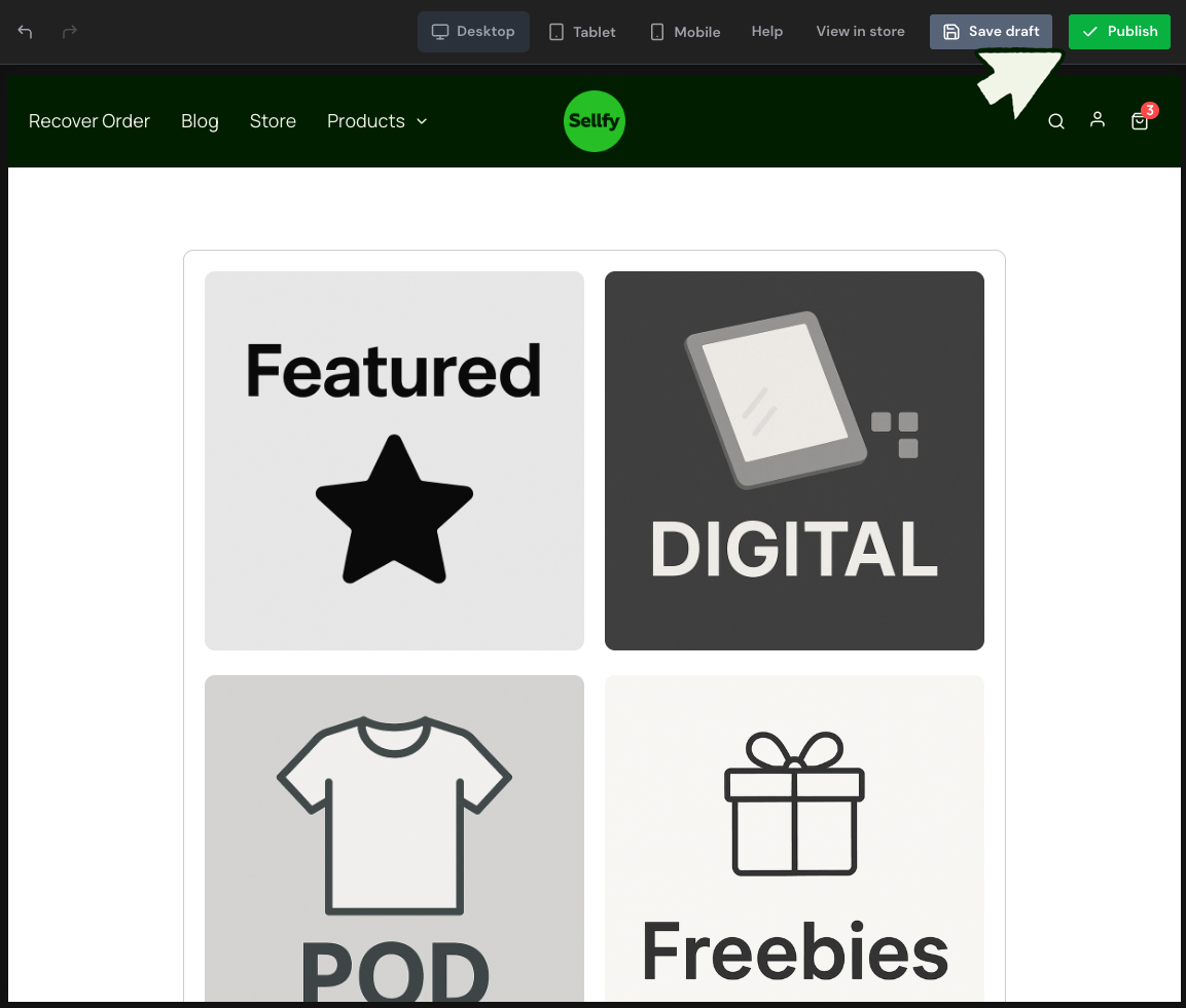 Use the Store Customizer to create a unique look and feel for your Sellfy store. We recommend adding products before customizing your store so you can see what your store looks like with your products.